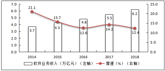 圖4 2014年-2018年我國軟件業務收入情況