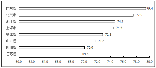 圖8 2019年領先省份綜合發展指數排名情況