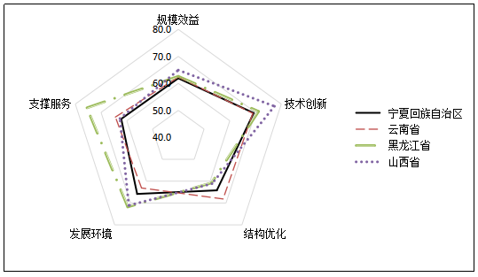 圖11 2019年排名前四中間省份雷達圖