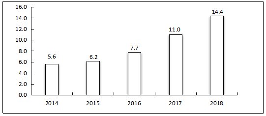 圖7 2014年-2018年我國電子商務應用發展情況