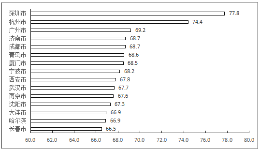 四是重點城市產業支撐服務作用顯著,發展各具特色。重點城市綜合發展指數均值69.0,其中排首位的是深圳市,綜合發展指數77.8,高出重點城市均值8.8個分值,其結構優化指數穩居首位,高于重點省市平均水平16.8個分值,以云服務為代表的信息技術服務形式演變加快,全年云化運營收入達1437.5億元,比上年增長10.7%,云化平臺快速發展成熟,在安全、金融財務等領域増勢突出。杭州市支撐服務指數最高,軟件業對智能制造的支撐能力較強,建有國家級物聯網產業示范基地,實施工廠物聯網項目236個,企業上云4萬家,工業互聯網平臺在助力企業生產效率提升方面示范作用突出。濟南市發展環境指數位居前列,高出重點城市平均水平4.6個分值,支持軟件業發展的政策體系不斷完善,把《濟南市促進先進制造業和數字經濟發展若干政策措施》作為2019年1號文件進行發布,同時出臺《大數據與新一代信息技術產業發展規劃》《濟南市新型智慧城市建設行動計劃(2018-2020年)》《濟南市關于促進工業互聯網發展的指導意見》等專項文件。